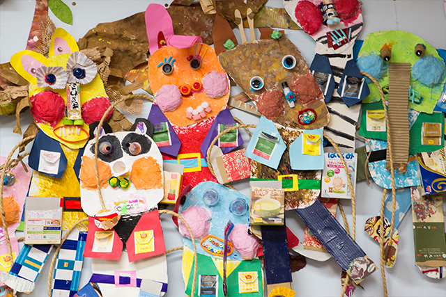 東京芸大美術館(東京都上野)にて幼稚園から大学まで美術教育の流れを体感する展覧会、美術と教育 全国リサーチプロジェクト2019「こんな授業を受けてみた!」に幼稚園の部で参加。前回の造形展の時の1クラスの授業風景と恐竜の作品を、2019年10月13日~11月4日(祝)まで展示しました。